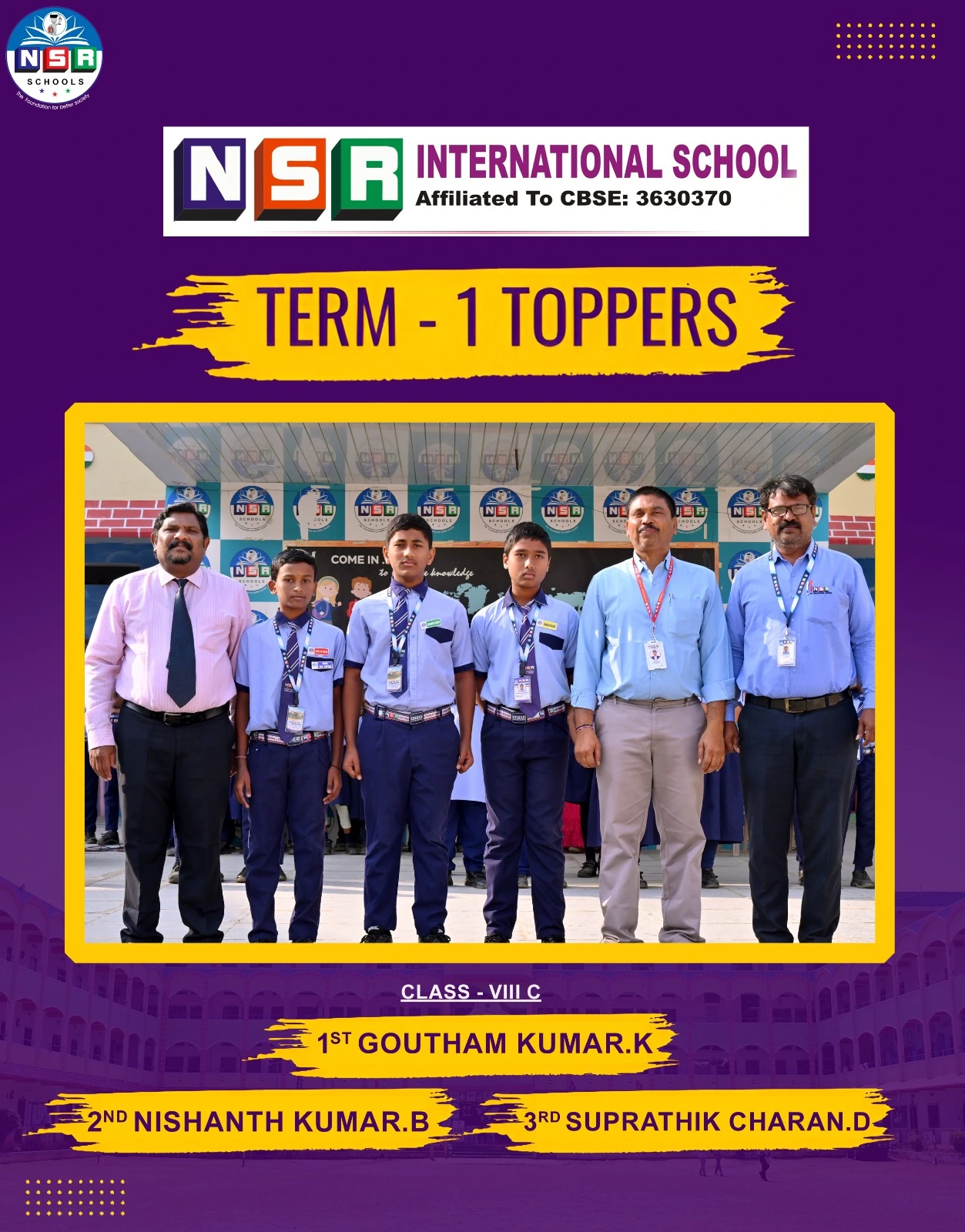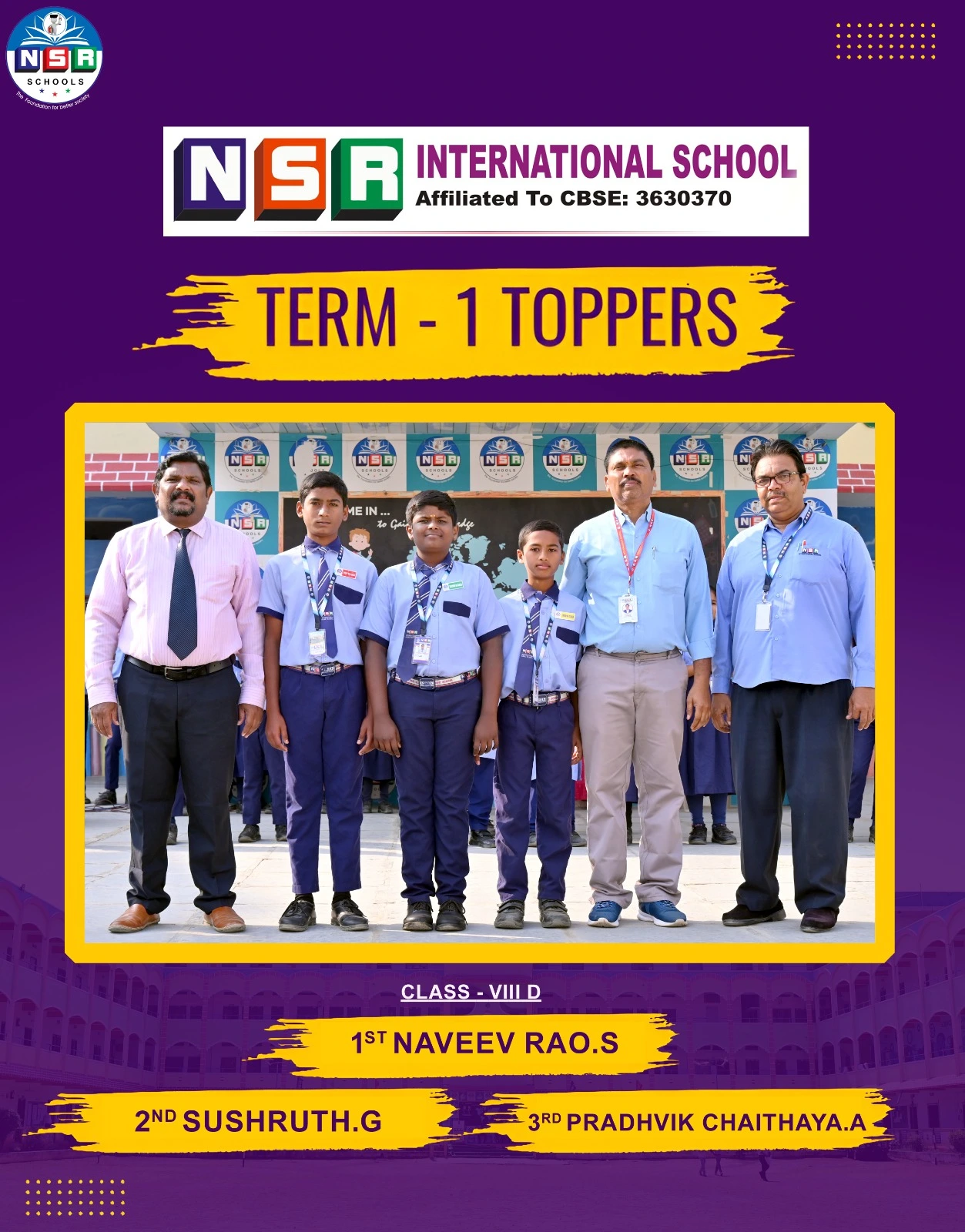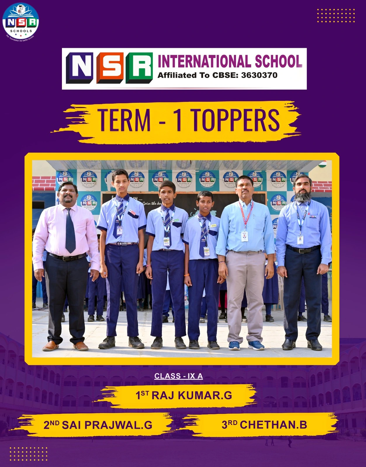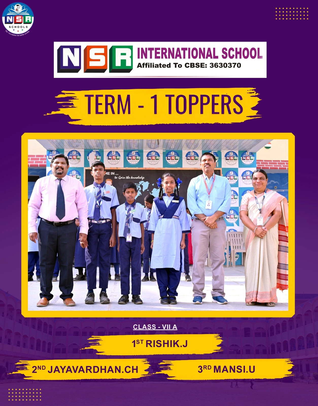 NSR emerged as a top notch state level organization with consistent record breaking results for all the consecutive years right from the establishment and moving on the pillars of Hard Work, Commitment, Dedication towards education.